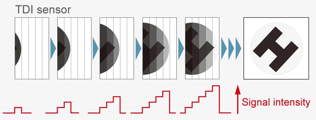 Schema esemplificativo del meccanismo del time-delayed-integration (TDI):